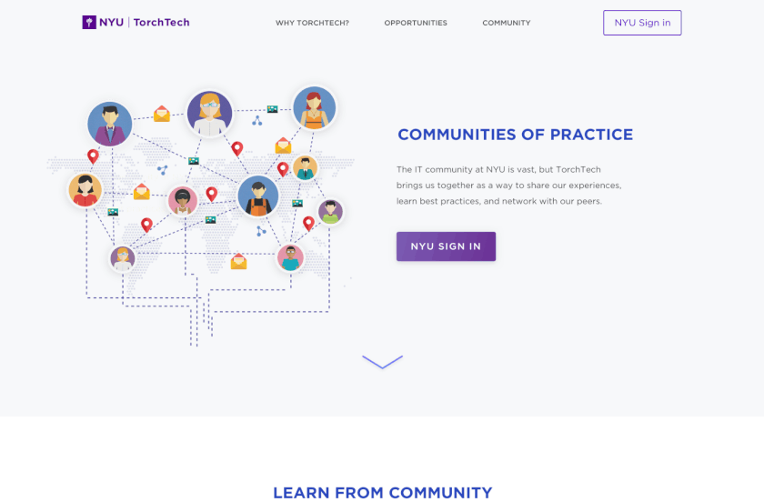 Given that NYU has a big IT department, it uses different services to form groups and collaborate with others. For example, they used Google groups and Communities of Practice to create or join interested groups. They also used NYU Events to view details and would occasionally land on the website, NYU Torch Tech to learn more about other departments and its employees. However, the website was mostly static and had poor navigation.